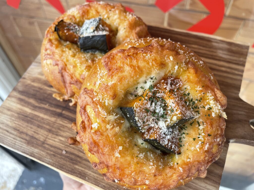 北海道産かぼちゃの生地で、北海道産生乳を使用したチキングラタンを包み込み、たっぷりのチーズをトッピングし香ばしく焼き上げました🧀