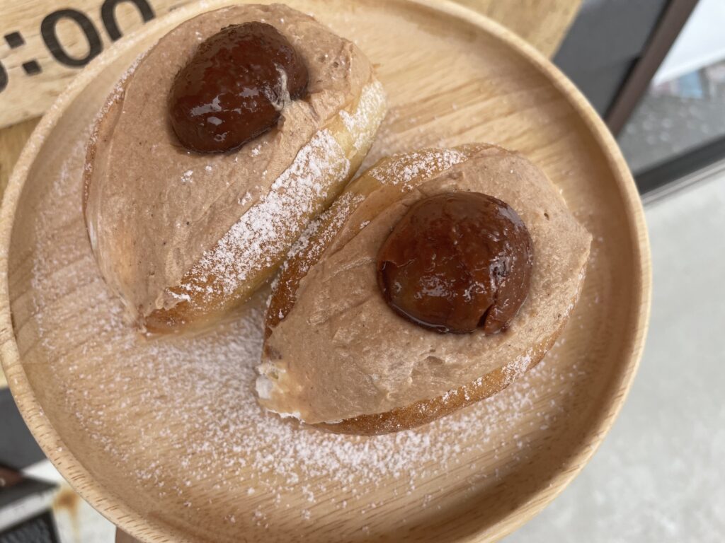 見た目も味わいもまるでモンブラン🌰栗の風味をしっかり楽しめるマロンペースト入りクリームに、渋皮煮栗を贅沢にごろっと添えました。