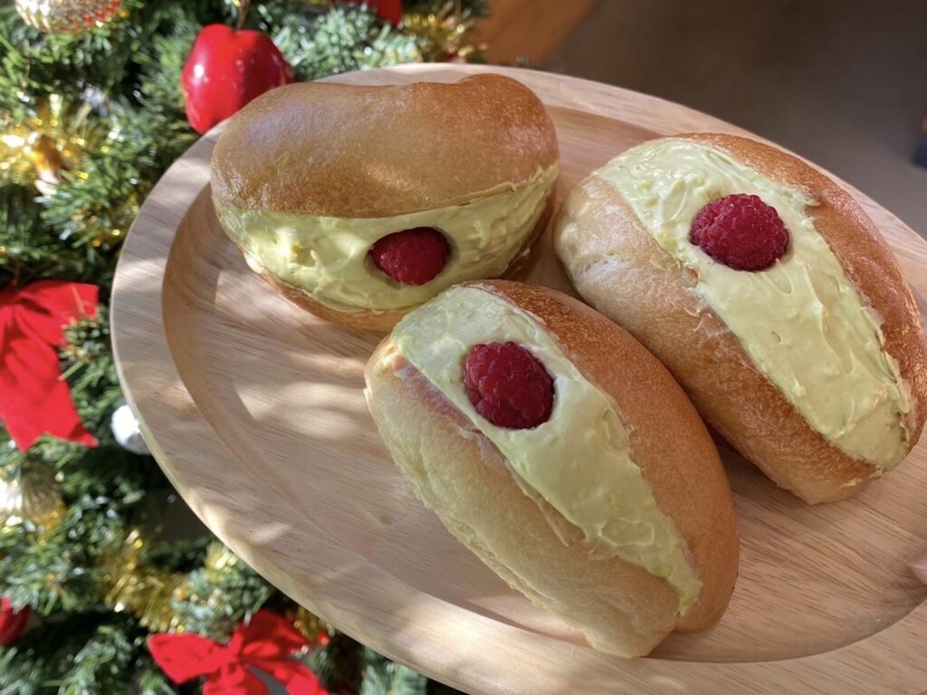 ▶まるで雪だるまみたいなベーグル。中身はカスタードクリームとスイートチョコ!